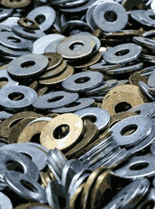 A washer is a flat disc with a hole in the center, used to distribute load, prevent loosening, or act as a spacer in fastener assemblies.